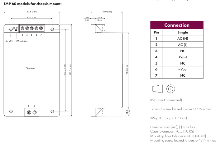 品牌:TRACOPOWER 加工定制:否 类型:开关式直流稳压器 输出电流:5 A 输入电压:AC90-264V V 输出电压:DC5-48 V 输出功率:60 W 频率范围:50HZ 工作温度:-25--71 ℃ 型号:TMP60136C TMP60105C TMP60148C TRACOPOWER模块电源TMP60124C TMP60112C TMP60115C TMP60136C TMP60105C TMP60148C