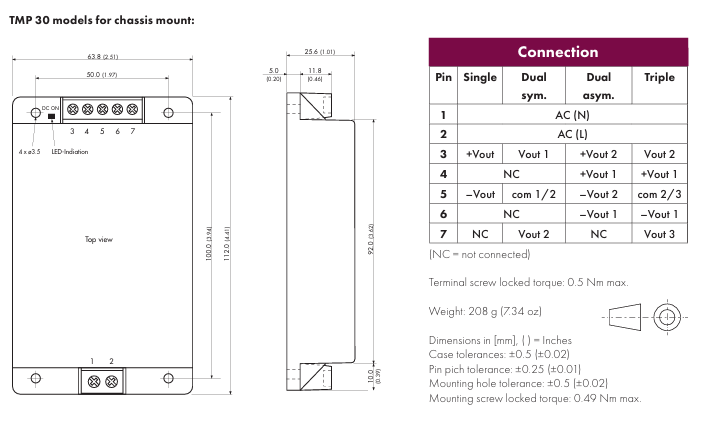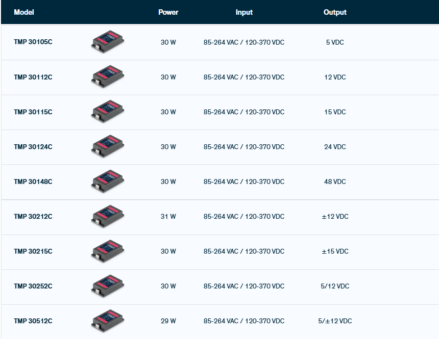 - TRACO底座安装开关电源模块30W系列TMP30124C TMP30112C TMP30115C TMP30105C TMP30148C