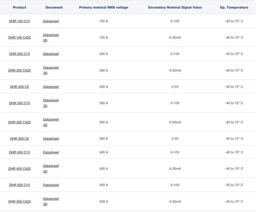 DHR产品系列为测量直流,交流和脉冲电流而设计,标称值范围为100至1000 A。