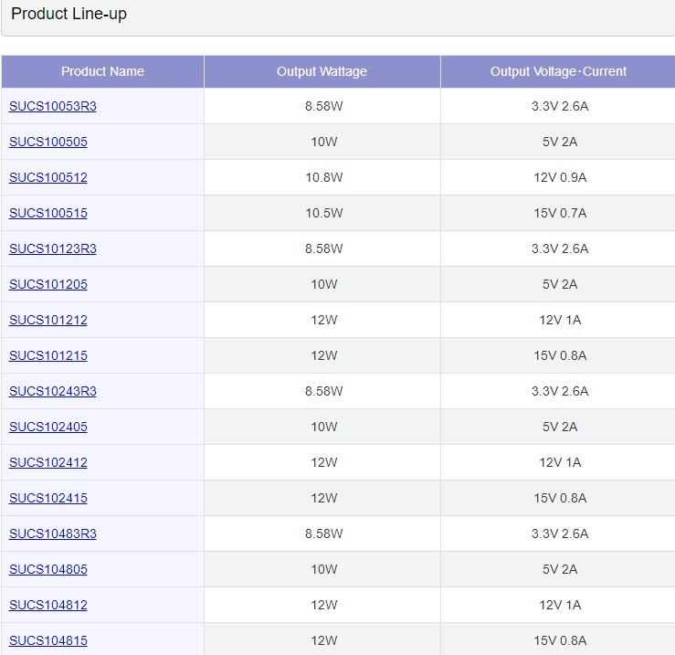 - 科索SUCS10系列DC/DC电源SUCS100505 SUCS100512 SUCS100515 SUCS10053R3 SUCS100515 SUCS10053R3