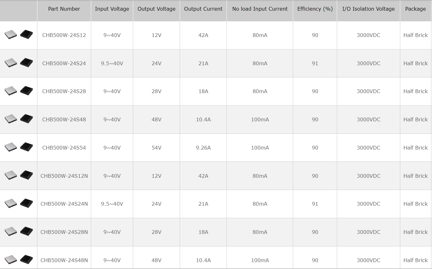 - 幸康CHB500W系列半砖电源模块CHB500W-24S24N CHB500W-24S28N CHB500W-24S12N CHB500W-24S54N