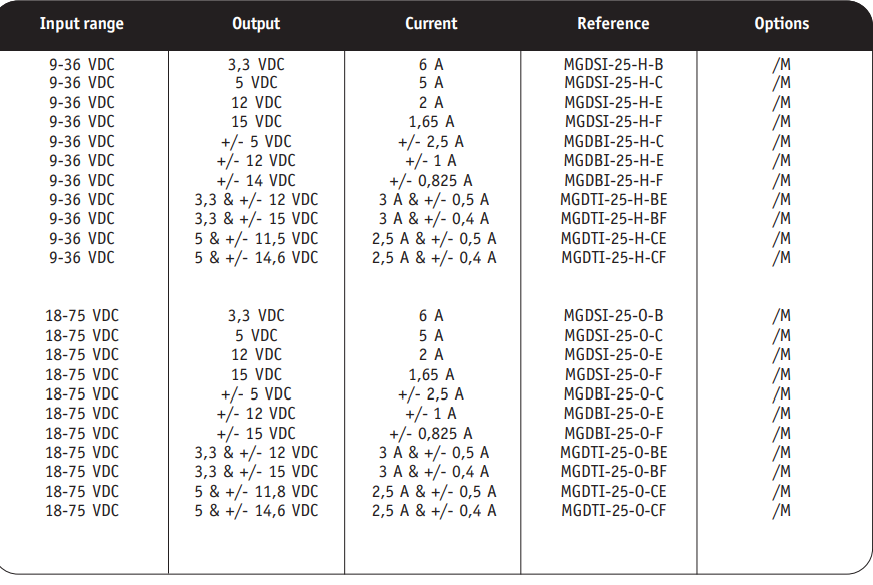 MGDI-25系列不需要外部散热片,即可在全温范围内提供25W至30W的输出功率。