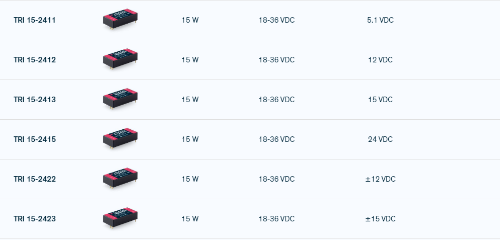 - TRACOPOWER可承受峰值电压8000 VDC直流电源TRI15-2411 TRI15-2412 TRI15-2413 TRI15-2415 TRI15-2422 TRI15-2423
