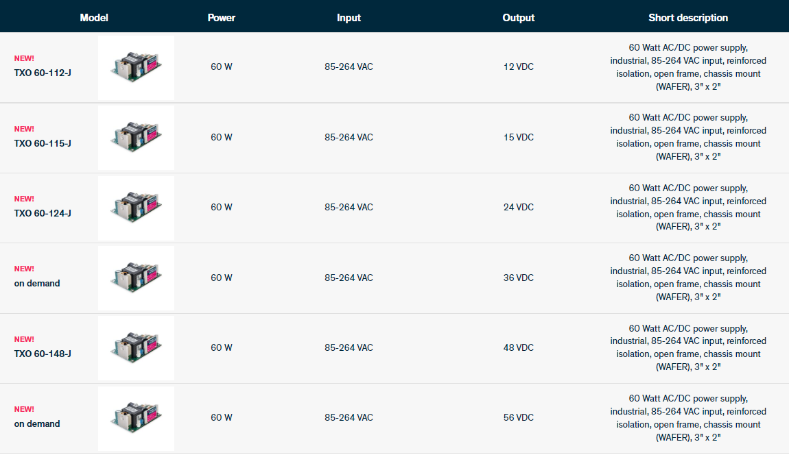 - TRACOPOWERTXO60系列AC/DC开放式电源TXO60-148-J TXO60-124-J TXO60-112-J TXO60-115-J