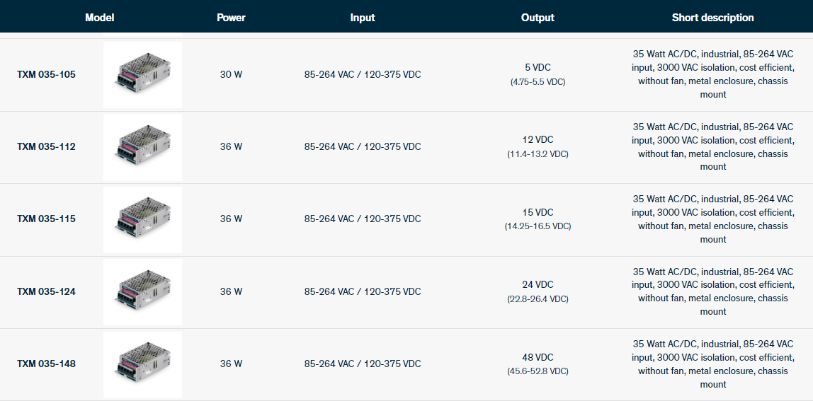 - TRACOPOWER35W工控电源 TXM035-112 TXM035-124 TXM035-105 TXM035-115 TXM035-148